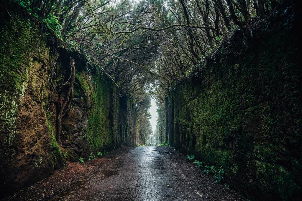 Jednym z najpiękniejszych punktów widokowych jest Mirador Cruz del Carmen. To obowiązkowy przystanek – zwłaszcza o poranku, gdy światło przecina mgłę unoszącą się nad lasem. Widać stąd całą dolinę La Laguna, a przy dobrej pogodzie nawet stożek Teide w oddali.