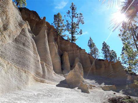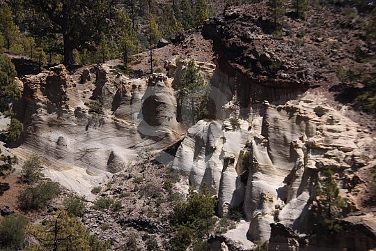 Około 2,5 godziny po wyruszeniu z Vilaflor, docieramy do celu – spektakularnej panoramy Los Escurriales, z punktu widokowego ukazującego liczne białe iglice i wieżyczki z pumeksu. Ta lekka, porowata skała wulkaniczna o jasnym kolorze tworzy wyraźny kontrast z ciemnozielonymi sosnami