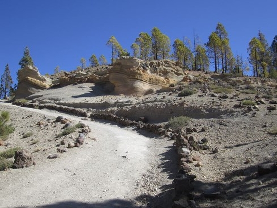 Szlak do Księżycowego Krajobrazu to 13,5-kilometrowa pętla, której przejście zajmuje ok. 5,5 godziny. Początkowo trasa prowadzi przez dawne tarasy uprawne, dziś częściowo zarastane przez lasy sosnowe objęte ochroną w ramach parku Corona Forestal. Roślinność zmienia się stopniowo, a ścieżka wznosi się przez zbocza porośnięte sosną kanaryjską – gatunkiem endemicznym, który dzięki swojej grubej, warstwowej korze jest odporny na ogień i potrafi odrastać po pożarach.