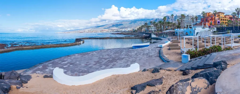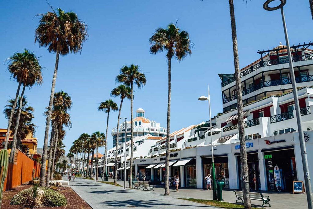 na południowym wybrzeżu Teneryfy. Znana z tętniącego życiem klimatu, szerokich, piaszczystych plaż