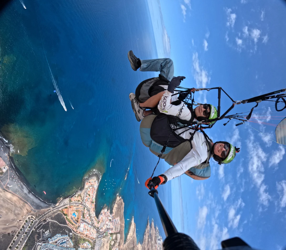 Usiądź wygodnie w uprzęży, podziwiaj ocean, klify i wulkan Teide. Instruktor wykorzysta prądy powietrzne, by wydłużyć lot i zapewnić Ci niezapomniane widoki.