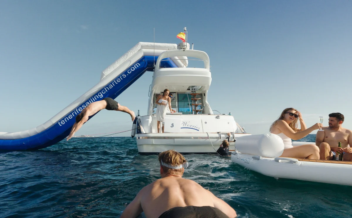 Najbardziej luksusowa opcja, całodniowa wyprawa wzdłuż wybrzeży Teneryfy. To pełna kombinacja wszystkich atrakcji – wyborne jedzenie, otwarty bar, beach club, zjeżdżalnia wodna i różnorodne aktywności. Idealna propozycja dla tych, którzy chcą maksymalnie wykorzystać dzień na oceanie.