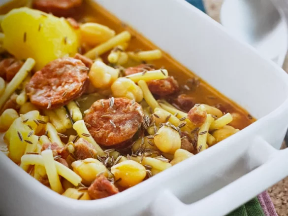 Odpowiednik naszej fasolki po bretońsku tylko zamiast fasoli jest ciecierzyca.